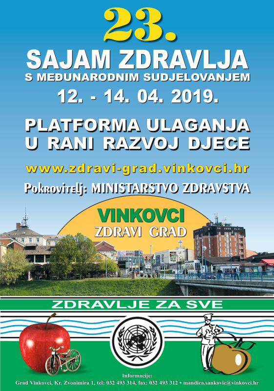Sajam zdravlja je jedna od tri najvažnije središnje manifestacije Hrvatske mreže zdravih gradova. Ovogodišnji 23. Sajam zdravlja, s međunarodnim sudjelovanjem, održat će se u Vinkovcima od 12. do 14. travnja 2019. godine, sa središnjom temom “Platforma ulaganja u rani razvoj djece – značaj predškolskog obrazovanja”. Organizatori su Grad Vinkovci, Vukovarsko-srijemska županija i Hrvatska mreža zdravih gradova.