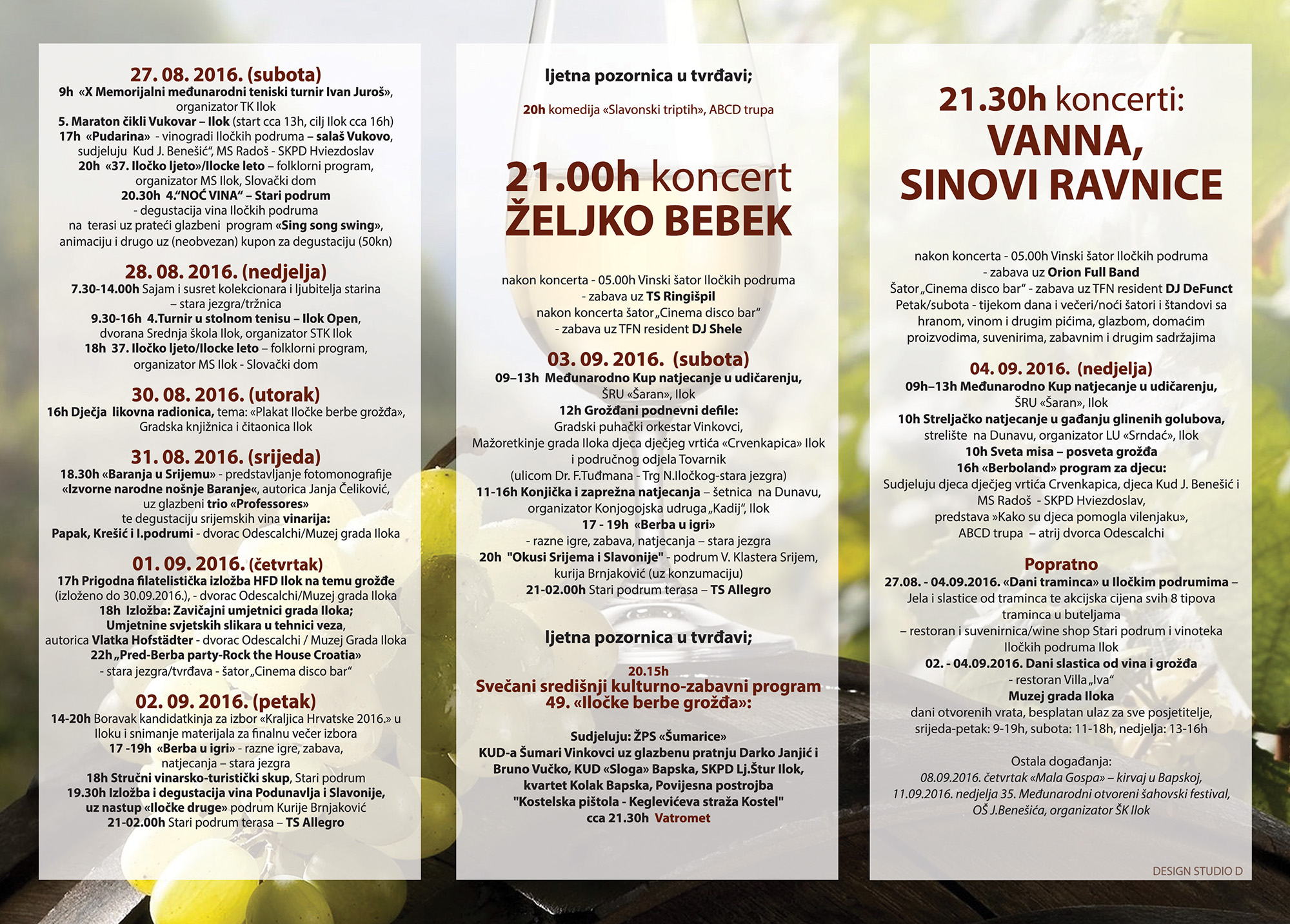 Tekuće objave i info, fb event 50. Iločka berba https://www.facebook.com/events/554624578056949/ https://www.facebook.com/VisitIlok/