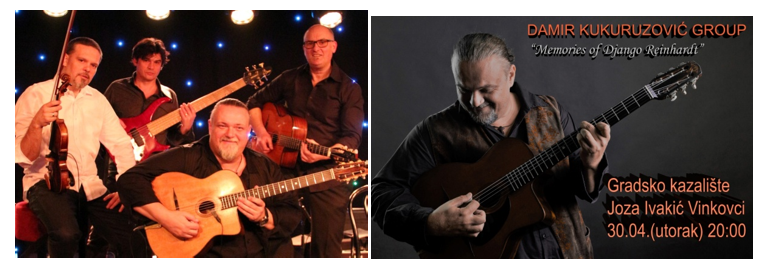 Gradsko kazalište Joza Ivakić Vinkovci vas poziva na koncert "Damir Kukuruzović i DJANGO GROUP" koji će se održati u utorak, 30. travnja s početkom u 20:00 sati, povodom Međunarodnog dana jazza.