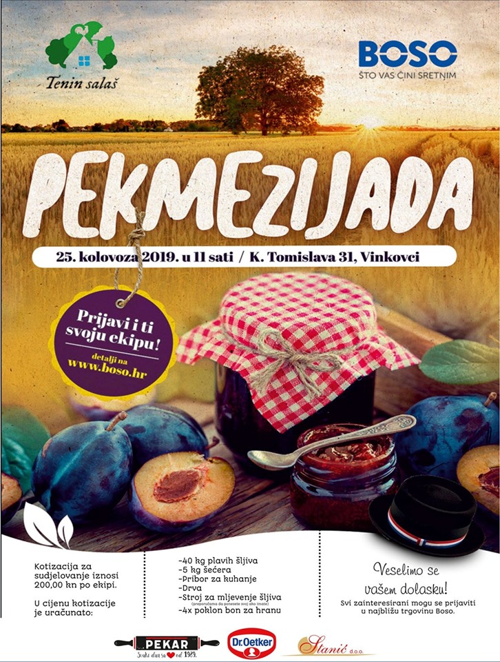 Želite se okušati u pripremi pekmeza na tradicionalan način ili pak vidjeti sajam autohtonih slavonskih proizvoda!? Dođite 25. kolovoza na Salaš Tena i uživajte u Slavoniji i njezinim plodovima. Program počinje u 11 sati.