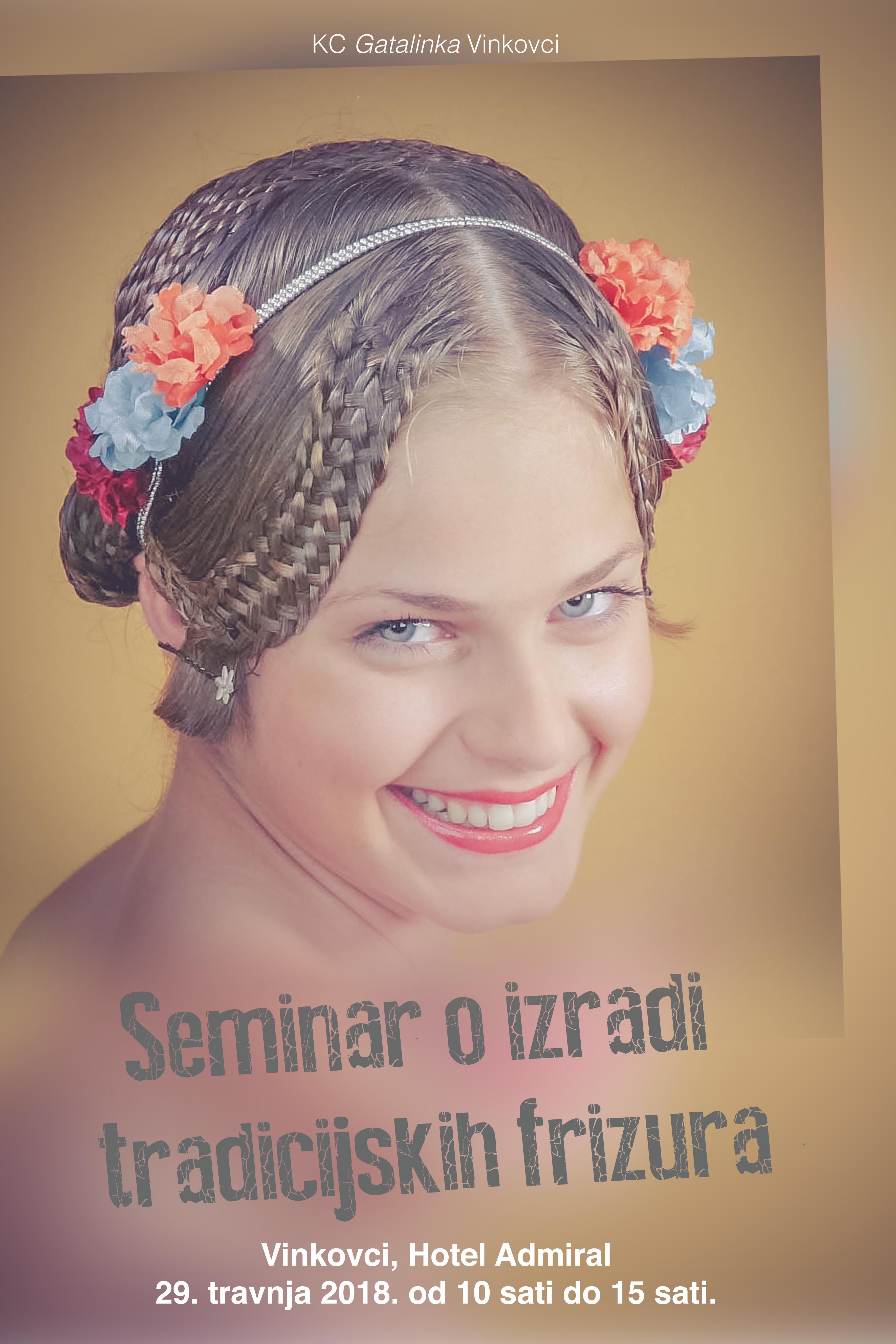 Kulturni centar "Gatalinka", Vinkovci organizira Seminar o izradi tradicijskih frizura 29. travnja 2018. godine u hotelu Admiral. Seminar traje od 10 do 15 sati.