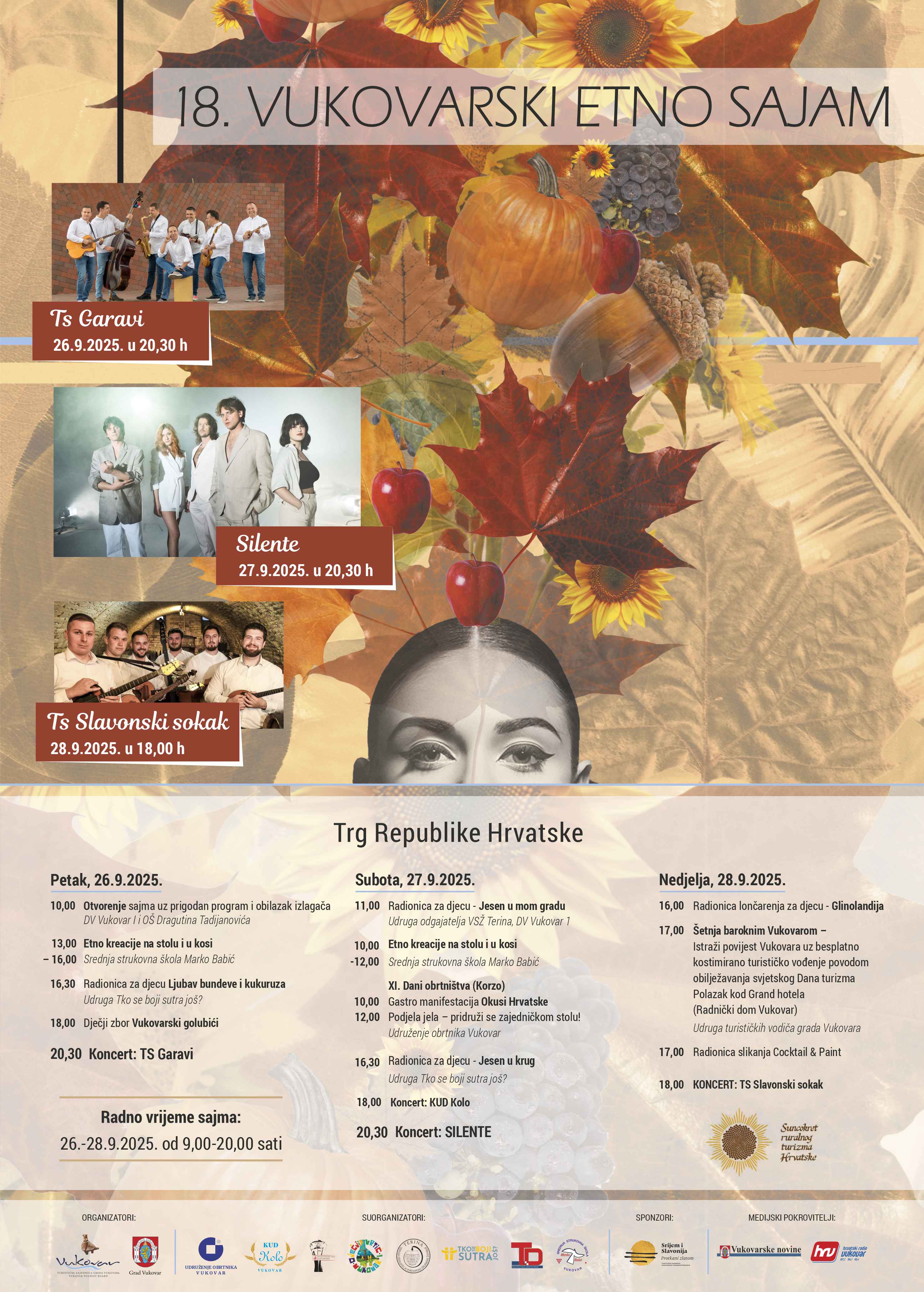 Doživite čaroliju tradicije na 18. Vukovarskom etno sajmu od 26. do 28. rujna 2025. na Trgu Republike Hrvatske.
