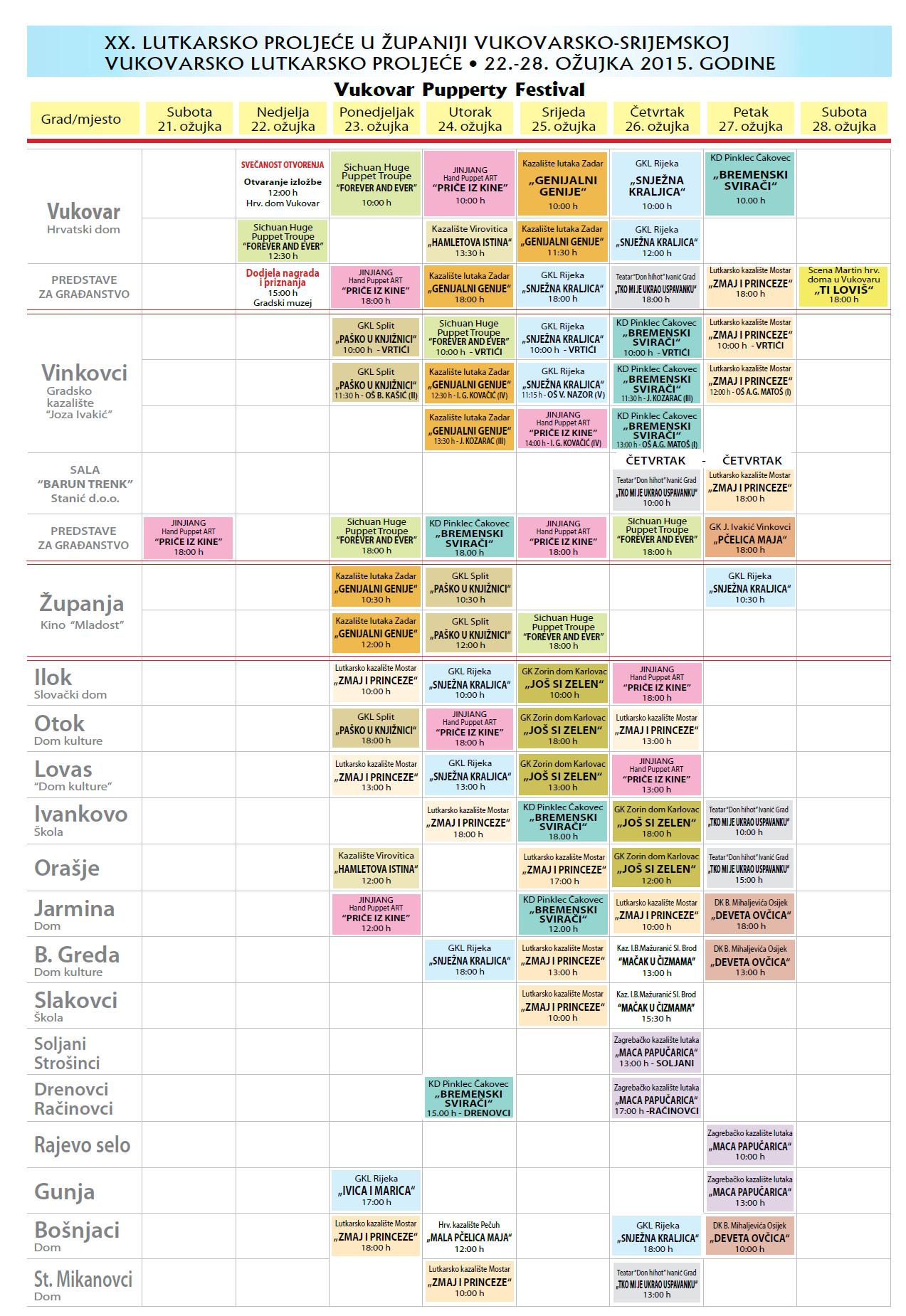 Očekuje nas bogat program u Vukovaru, Vinkovcima, Županji, Iloku, Otoku, Lovasu, Ivankovu, Orašju, Jarmini, B. Gredi, Slakovcima, Soljanima, Strošincima, Drenovcima, Račinovcima, Rajevom selu, Gunji, Bošnjacima i Starim Mikanovcima.