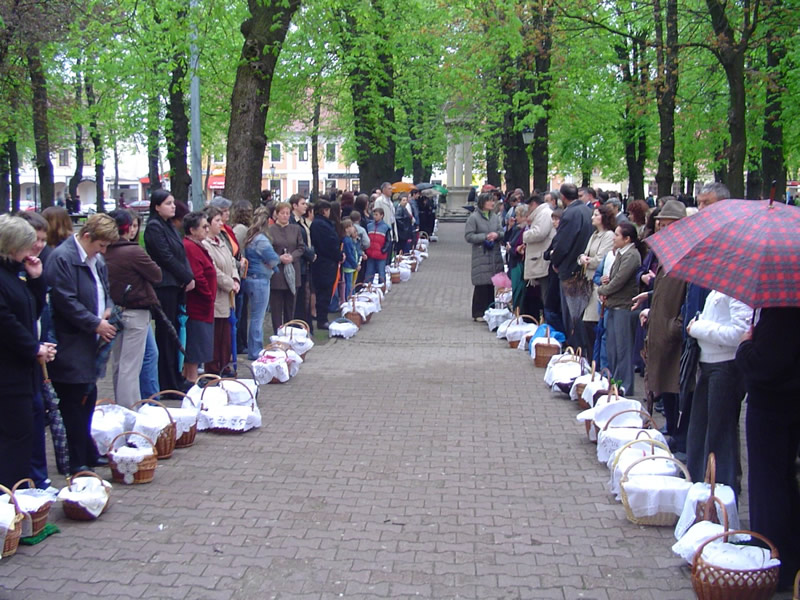 Zanimljivu ideju članicama Društva „Hrvatska žena“ Vinkovci prezentirao je poznati vinkovački slikar i kipar Branko Bazina. Predložio je da građani u prigodi uskršnjih blagdana i običaja kojim se svetenju, blagoslovu jela, poklanja posebna pozornost, fotografiraju uskršnje košarice( svoje, svojih susjeda, prijatelja) i da fotografije pošalju na e-mail „Hrvatske žene“ Vinkovci dhzena@gmail.com. Ideja je prihvaćena i dobila je podršku svih članica ove udruge ali i kompetentnih kada je u pitanju čuvanje i promicanje tradicijskog života na ovim prostorima, pučkih pobožnosti i običaja, posebno Gradskog muzeja Vinkovci i mr.sc.Ljubice Gligorević, muzejske savjetnice.