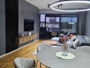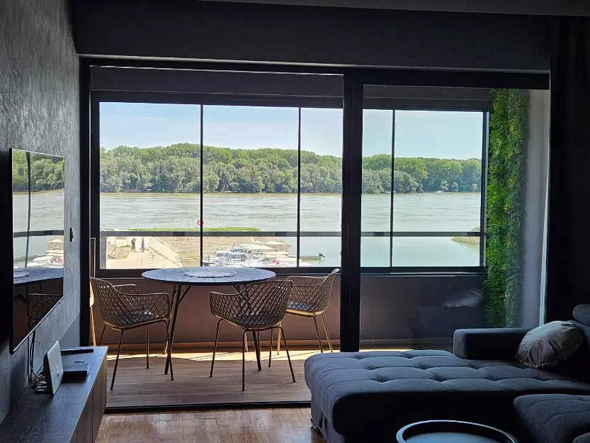 Apartman ima potpuno opremljenu kuhinju, blagovaonicu, dnevnu sobu s TV-om i kaučem na razvlačenje, spavaću sobu s bračnim krevetom i TV-om koja ima pogled na Dunav, drugu spavaću sobu s bračnim krevetom, kupaonicu s walk-in tušem i dodatni toalet. U apartmanu ima sve što je potrebno za ugodan odmor: priključak na optički internet, MaxTV s velikim izborom programa, klima, perilica suđa, mikrovalna pećnica, aparat za kavu, sušilo za kosu, perilica i sušilica rublja, glačalo i daska za glačanje.