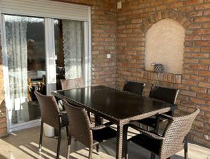 Kuća ima 4 spavaće sobe, dvije kupaonice, hodnik, kuhinju i dnevni boravak, namijenjena je za 9 osoba. Iz kuhinje se izlazi na terasu koja ima pogled na vrt i prirodu, te je opremljena stolom, stolicama, pekom i roštiljem.