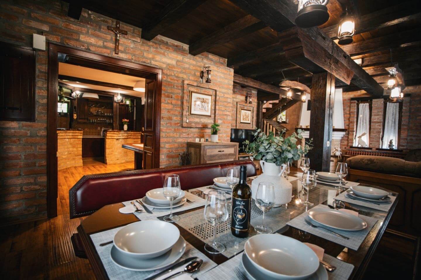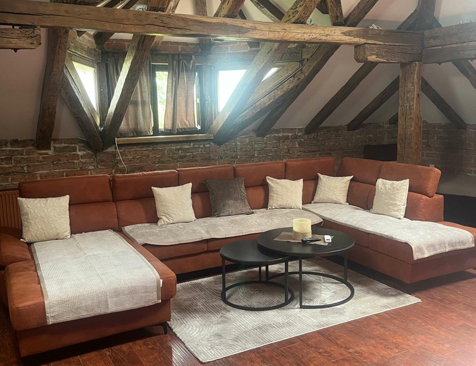 Kuća se prostire na dvije etaže i može ugostiti do 12 osoba, što je čini idealnom za obiteljski odmor, druženja s prijateljima ili manje proslave. Izgrađena je u tradicionalnom slavonskom rustikalnom stilu koji odiše toplinom i domaćom atmosferom. Prostrano i potpuno ograđeno dvorište čini ovaj objekt posebno pogodnim za obitelji s djecom, koje mogu bezbrižno uživati u igri na otvorenom.