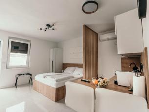 Za obitelji ili manje društvo dostupan je i prostrani apartman za do četiri osobe, koji uključuje spavaću sobu s bračnim krevetom, dnevni boravak s kaučem na razvlačenje, kuhinju i kupaonicu.