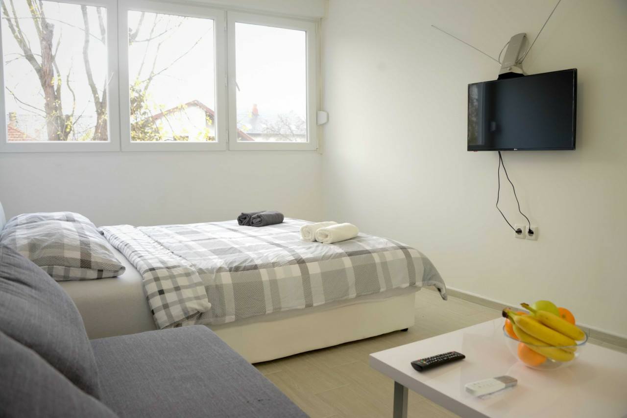 Smještaj u neposrednoj blizini autobusnog i željezničkog kolodvora. Čist moderno namješten i potpuno opremljen smještaj.