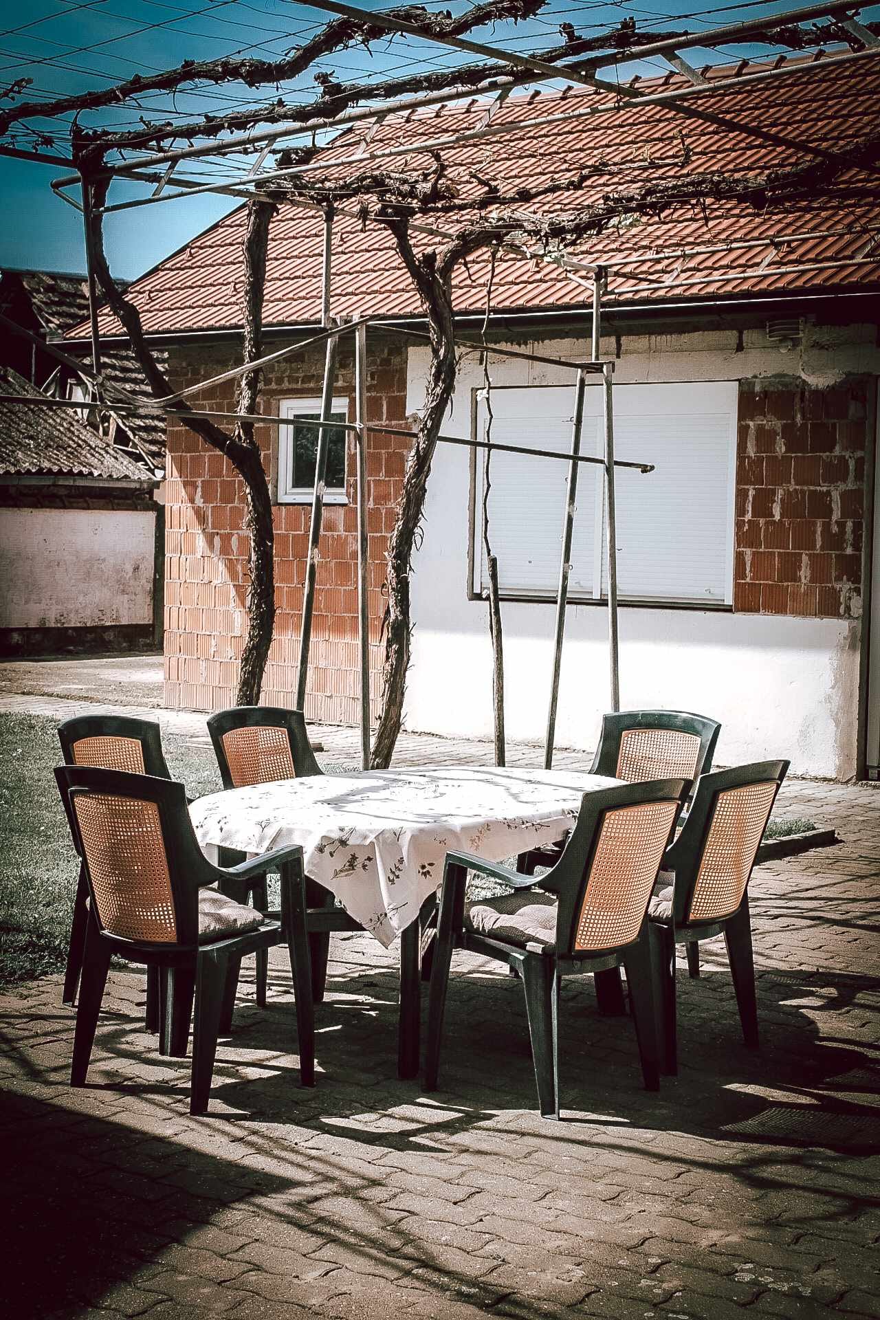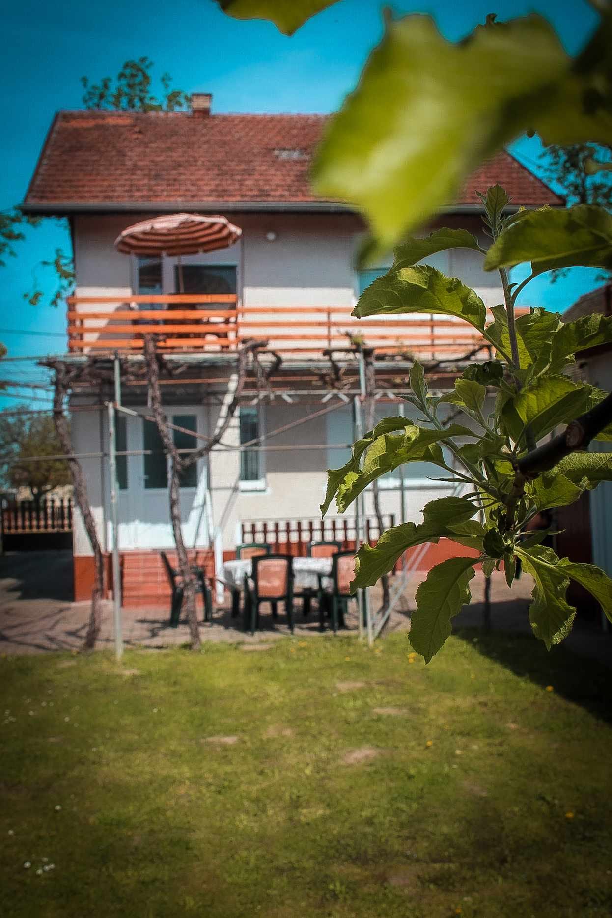 U sklopu kuće nalazi se veliko dvorište s parkingom, garažom i prostorijom za roštiljanje. Biciklistima omogućeno sigurno mjesto za spremanje bicikla s potrebnim biciklističkim alatima.