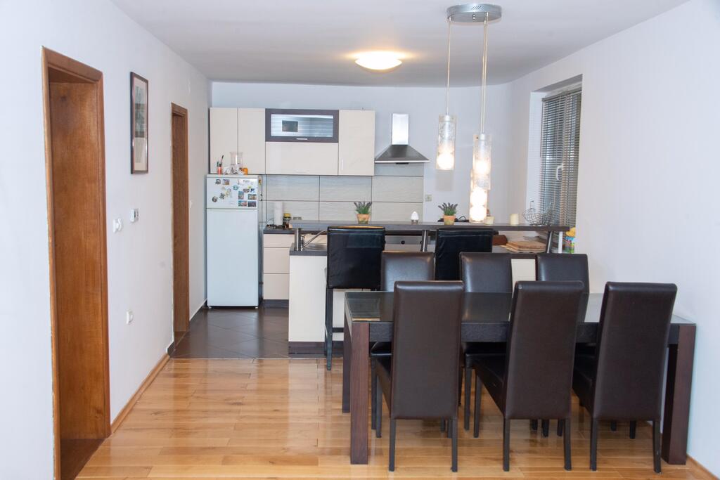 Objekt nudi apartman u kući od 90 m2, te veliko dvorište s natkrivenim roštiljem i velikim stolom za objed i druženje.