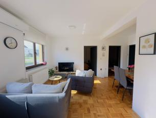 Samostalna kuća koja sadrži sve za kvalitetan odmor. Kuća ima zatvoreni parking te još veliki dodatan parking na otvorenom. Opremljena je svim namještajem kako bi zadovoljila sve potrebe komfornog odmora za svakoga gosta.