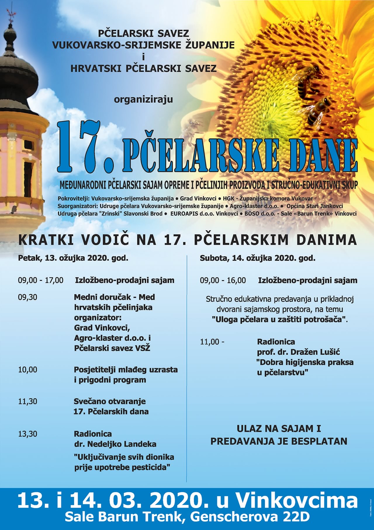 U Vinkovcima se od 13. do 14. ožujka održavaju 17. Pčelarski dani, a s njima i Međunarodni pčelarski sajam opreme i pčelinjih proizvoda.