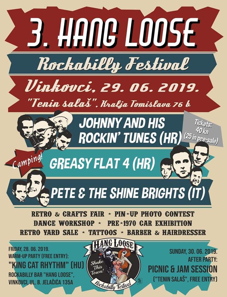 Treći Hang Loose Rockabilly Festival izmješten je s vrućeg gradskog asfalta na travnatu podlogu "Teninog salaša", na njemu će svirati ukupno četiri rockabilly benda (jedan u "zagrijavanju" u petak u prostoru Rockabilly Bara Hang Loose, te tri na glavni dan festivala, u subotu, 29. lipnja na "Teninom salašu"), a osim već standardnih sadržaja - pratećeg sajma, plesne i zabavne radionice te izložbe oldtimera, ove godine uključuje i mogućnost kampiranja, javni Pin-up foto natječaj i Retro Yard Sale.