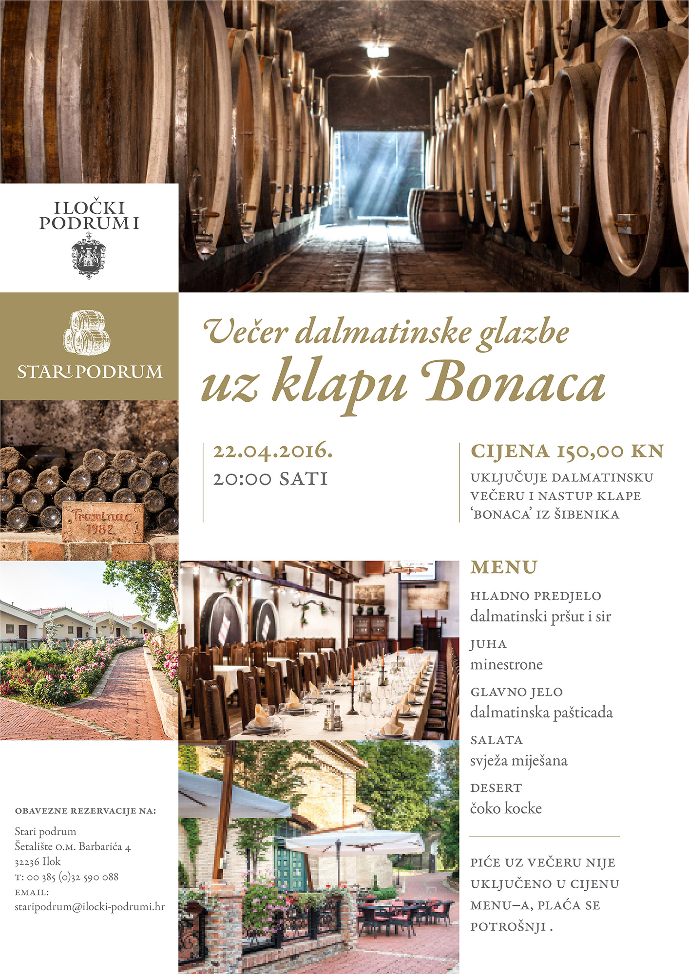 Večer srijemskih vina, dalmatinskih delicija i glazbe - klapa Bonaca! 22.04.2016., Stari podrum.