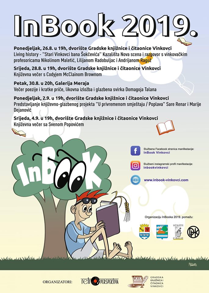 InBook 2019 se održava od 26. kolovoza do 4. rujna 2019. godine u dvorištu Gradske knjižnice i čitaonice Vinkovci. InBook je književna i šire kulturna manifestacija koja je samoinicijativno i volonterski organizirana od strane članica Udruge "retroPERSPEKTIVA" te je namijenjena mladima, ali nudi ponešto za svaku dobnu skupinu.