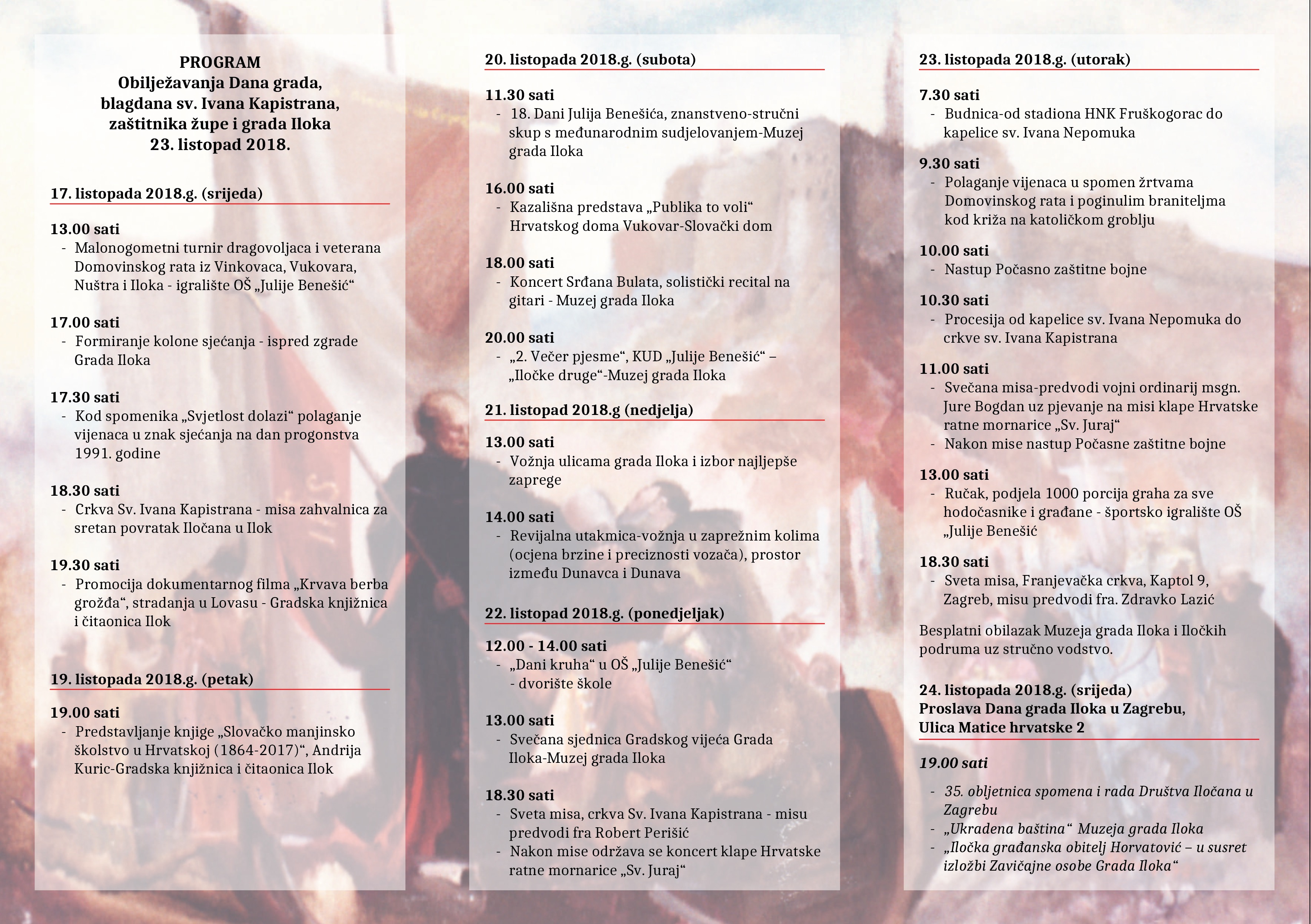 - sv. Misa u povodu blagdana sv. Ivana Kapistrana, zaštitnika grada Iloka. Predvodi fra. Zdravko Lazić, gvardijan franjevačkog samostana