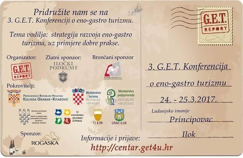 U organizaciji Udruge za kulturu stola G.E.T., a pod pokroviteljstvom Predsjednice Republike Hrvatske Kolinde Grabar-Kitarović, Ministarstva turizma RH, Ministarstva poljoprivrede RH, Udruženja vinarstva pri HGK, Grada Iloka, TZ grada i TZ Vukovarsko-srijemske županije Iloka, na Ladanjskom imanju Principovac će se 24.-25.3.2017. održati treća G.E.T. konferencija o eno-gastro turizmu. Zlatni sponzor konferencije je tvrtka Iločki podrumi d.d.
