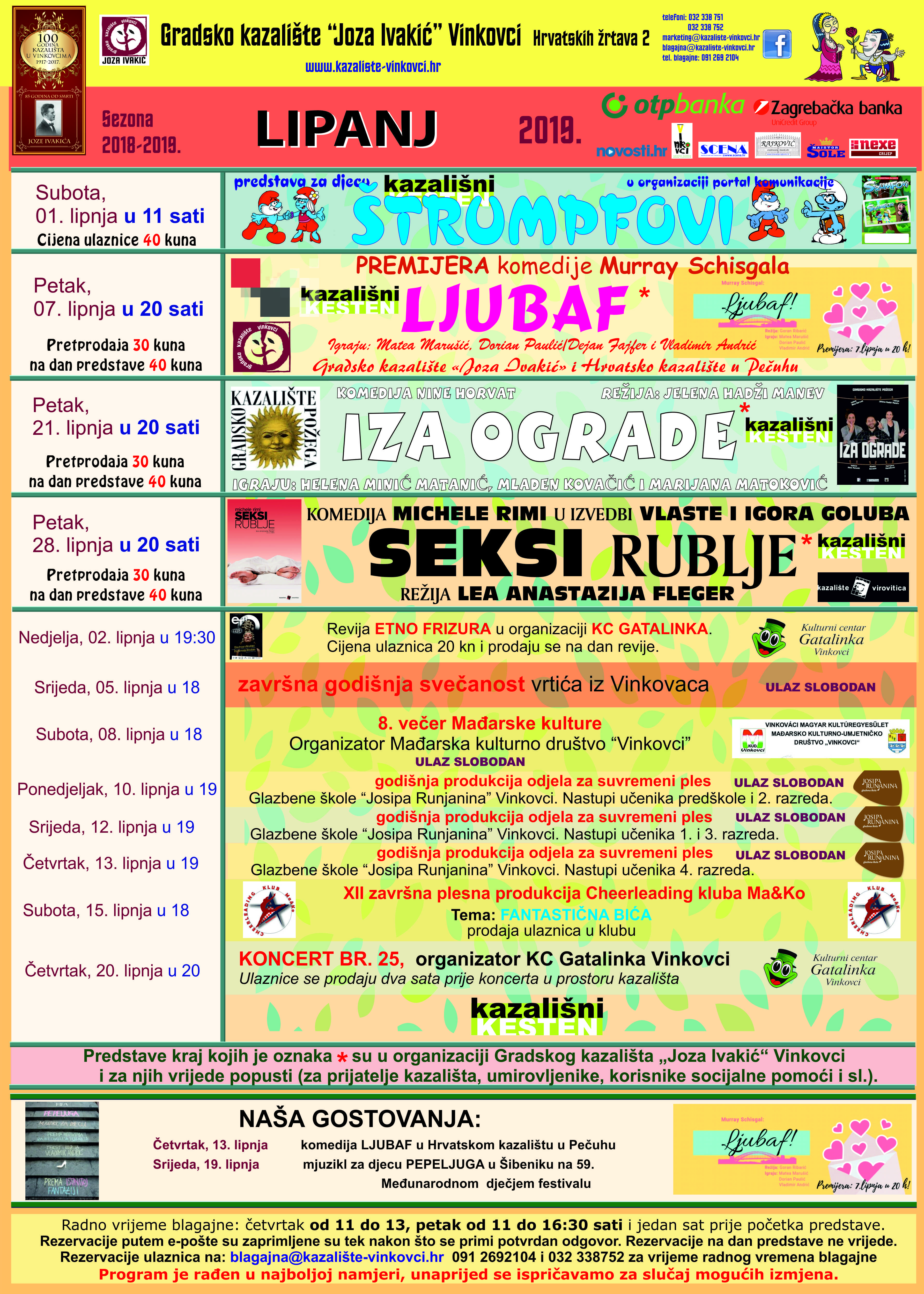 Program u Gradskom kazalištu "Joza Ivakić" Vinkovci - mjesec lipanj 2019.