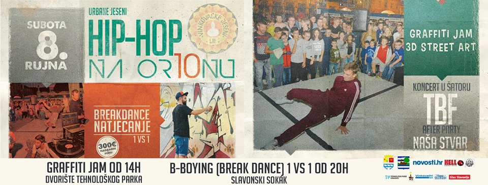Urbane jeseni 2018. - Hip-Hop Na Orionu 10 se održavaju 8. rujna s početkom u 14 sati. Urbame jeseni započinju "Graffiti Jam-om", a završavaju after party-em i koncertom TBF-a.