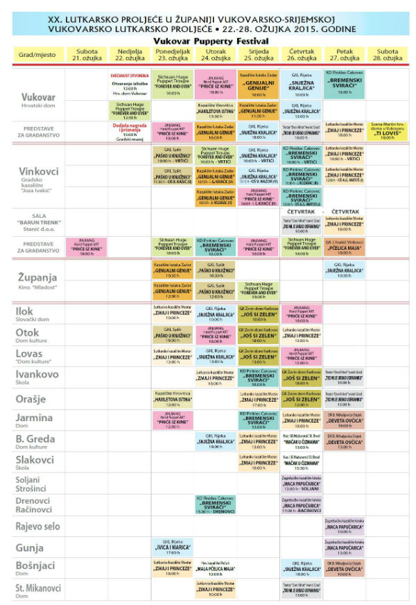 Od 22. - 28. ožujka 2015. godine održati će se 20. Lutkarsko proljeće u županiji Vukovarsko-srijemskoj.