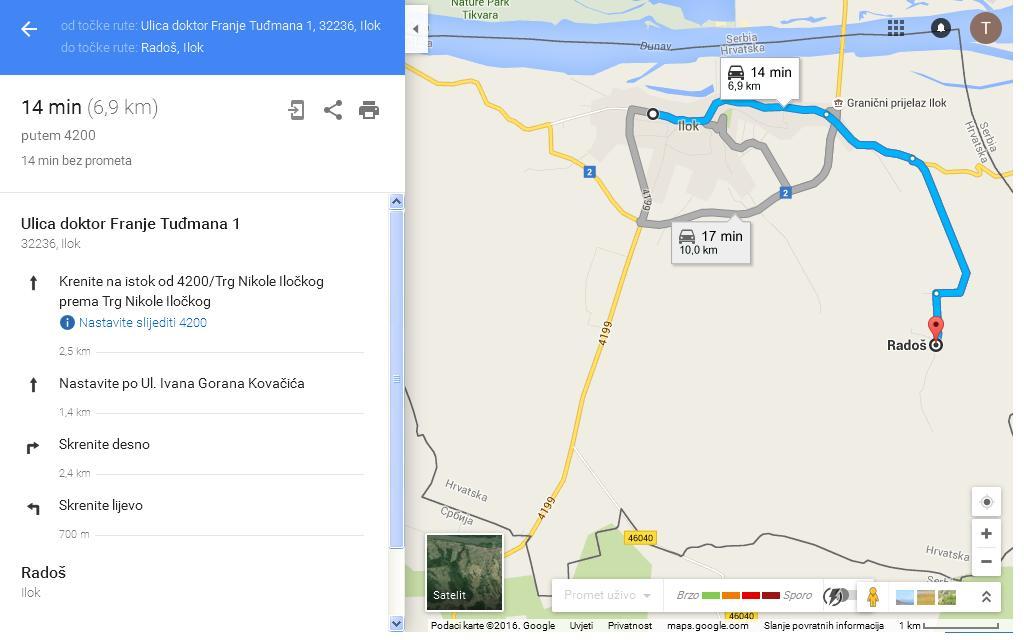 Dolazak iz pravca Vukovar-Ilok: https://www.google.hr/maps/place/Rado%C5%A1,+32236,+Ilok/@45.1955792,19.4125629,16z/data=!3m1!4b1!4m2!3m1!1s0x475b770f97f1a559:0x2da01ad7ba1d3a45?hl=hr