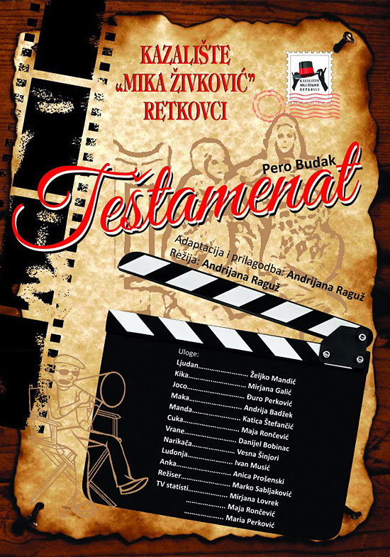 Retkovačko kazalište vrijedno priprema svoj novi kazališni uradak autora Pere Budaka „Teštamenat“ u režiji i adaptaciji Andrijane Raguž kojeg će premijerno odigrati nakon svečanosti otvorenja Smotre 26 siječnja.