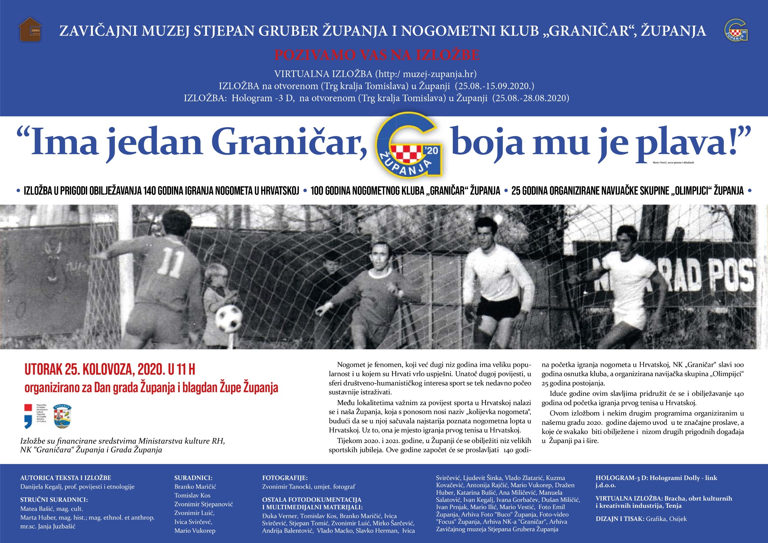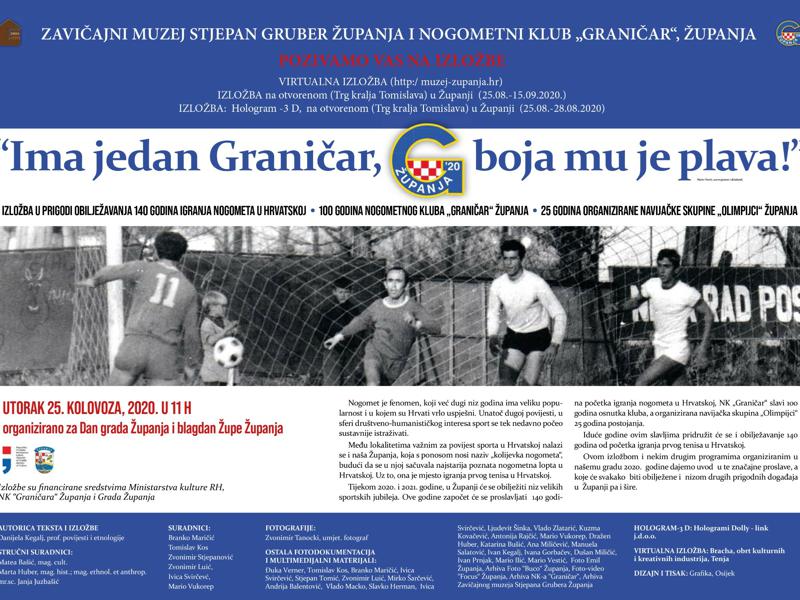 U utorak, 25. kolovoza 2020. (u 11h) na Trgu Kralja Tomislava u Županji, bit će postavljena izložba u prigodi obilježavanja 140 godina igranja nogometa u Hrvatskoj, 100 godina Nogometnog kluba ''Graničar'' Županja i 25 godina navijačke skupine ''Olimpijci''.