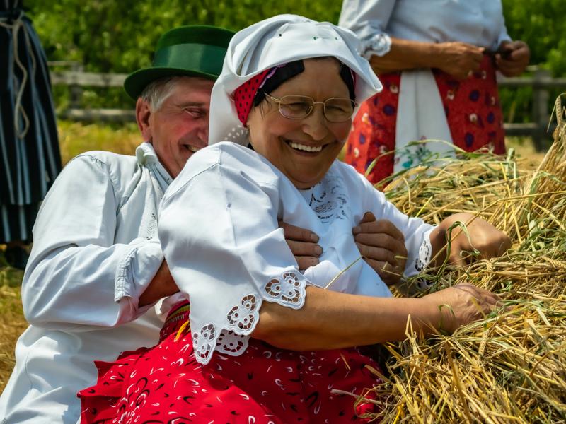 Uživat ćete u slavonskim delicijama i jedinstvenom pogledu na polje u kojem se uz pjesmu kosi, potom se žito skuplja srpovima, vezuje u snopove, slaže u zaprežna kola i vozi na vršidbu na guvno.