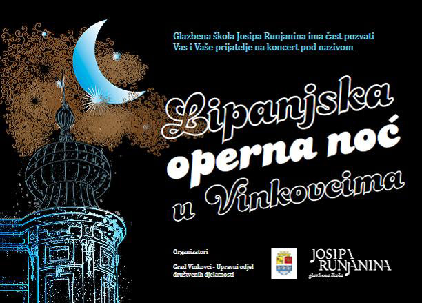 Sudjeluje Operni orkestar i zbor HNK Osijek. Ispunite subotnju večer nezaboravnim događanjem. Dođite 16. lipnja 2012., u 21 sat na gradsko šetalište u Vinkovcima i uživajte u Lipanjskoj opernoj noći.