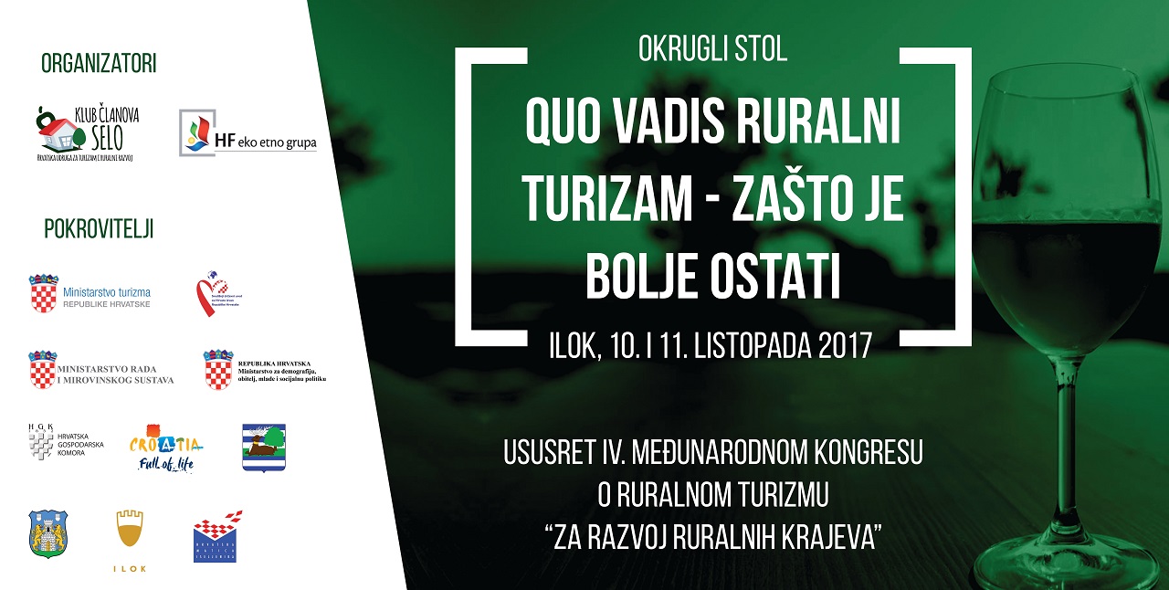 Prvi skup "Quo Vadis ruralni turizam Hrvatska" održan je prije točno 10 godina upravo u Iloku kao odabranoj primjer destinaciji.Ilok je ove godine zajedno sa Vukovarom postao i nacionalna destinacija izvrsnosti na temu kuturni turizam - Vukovar-Vučedol-Ilok - pobjednička EDEN destinacija 2017.g.