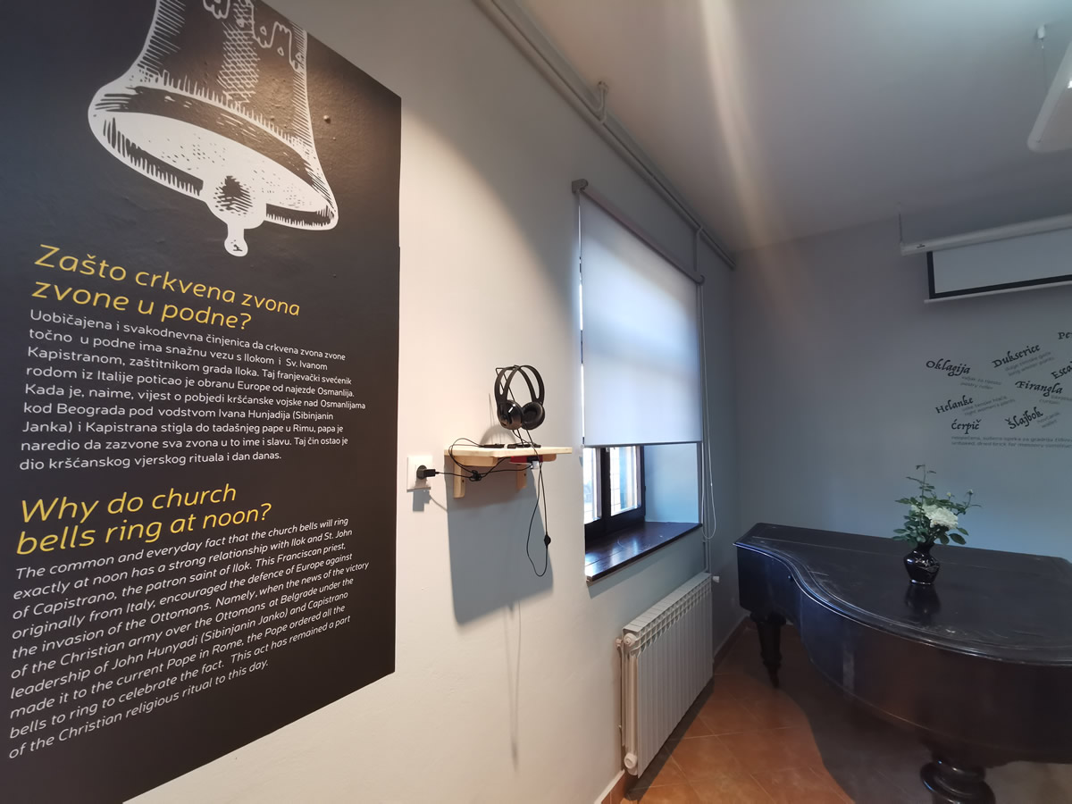 „U podrumu je smješten vinski svijet grada Iloka, u prizemlju tema povijesne priče grada Iloka a na prvom katu se nalazi biljni i životinjski svijet koji nudi mogućnost putem VR naočala provozati se sa šarengradskom čiklom, vinuti se u visine i letjeti na krilima orla krstaša i vidjeti kako naš grad izgleda iz te perspektive.