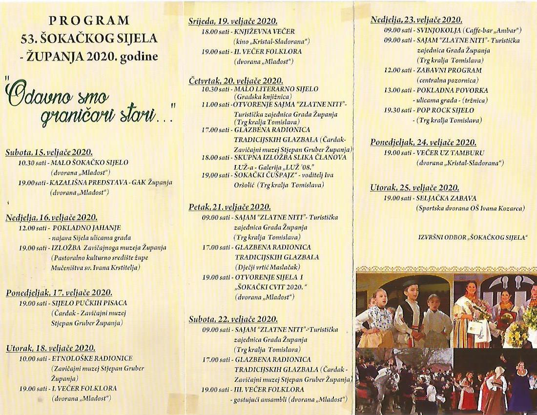 P R O G R A M 53. ŠOKAČKOG SIJELA - ŽUPANJA 2020. GODINE,