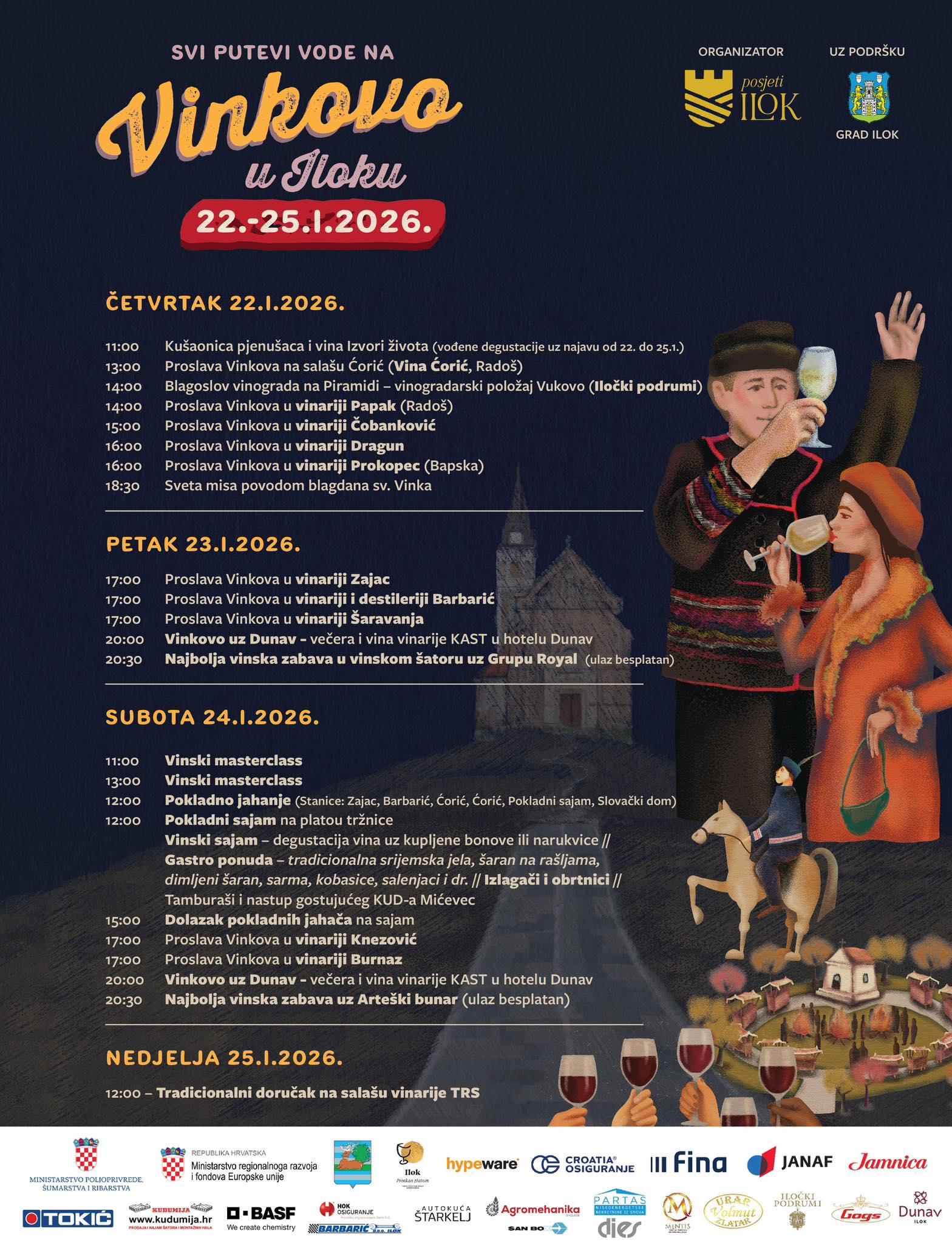 Od 22. do 25. siječnja 2026. slavimo Vinkovo u Iloku uz vrhunska vina, bogatu tradiciju, veselu glazbu i nezaboravnu atmosferu najistočnijeg grada Hrvatske.