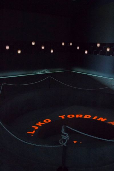 Ispod slika izložene su osobne stvari ubijenih nađene u masovnim grobnicama. Cijeli Spomen dom Ovčara je u mraku, jer su se zločini događali noću.