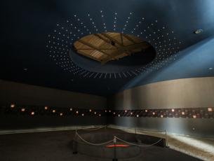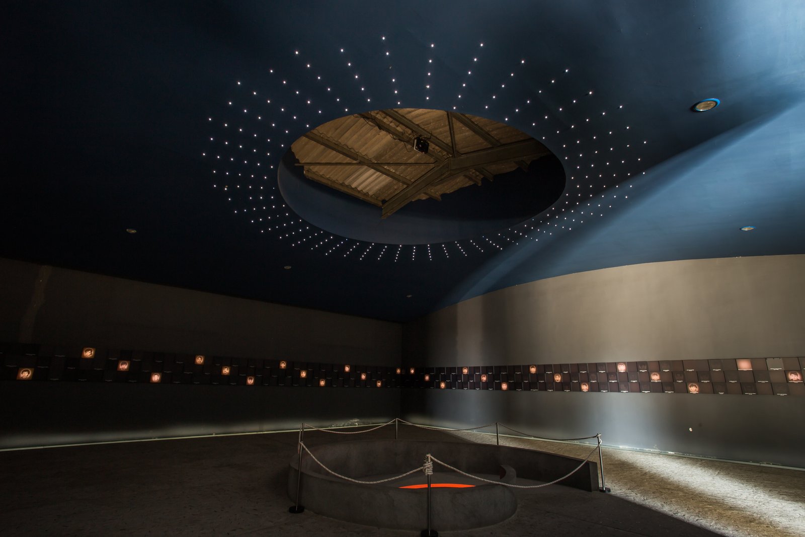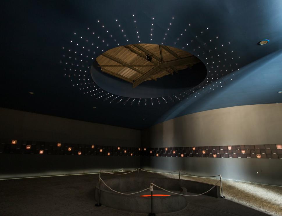 U središnjem dijelu poda nalazi se zdenac života ili spirala smrti, kojom do dna i natrag putuju imena 261 žrtve. Spirala simbolizira vir koji je progutao njihove živote, a taj neprekidan slijed aludira i na njihovo uskrsnuće. U dnu je upaljena svijeća koja predstavlja Kristovo svjetlo. Atmosfera u hangaru osmišljena je tako da što više nalikuje onoj iz 1991. godine te da je svaki posjetitelj može osjetiti. Zatočenici koji su preživjeli zlostavljanja u hangaru, odvoženi su do jaruge, udaljene otprilike oko 900 metara od puta Ovčara – Grabovo. Tu su 20. studenoga 1991. ubijeni i bačeni u Masovnu grobnicu Ovčara, sveto mjesto poznato u cijeloj Hrvatskoj i šire. Mjesto gdje su ubijeni ranjenici i medicinsko osoblje iz vukovarske bolnice. Njih 200. Odatle se preseliše među zvijezde…
