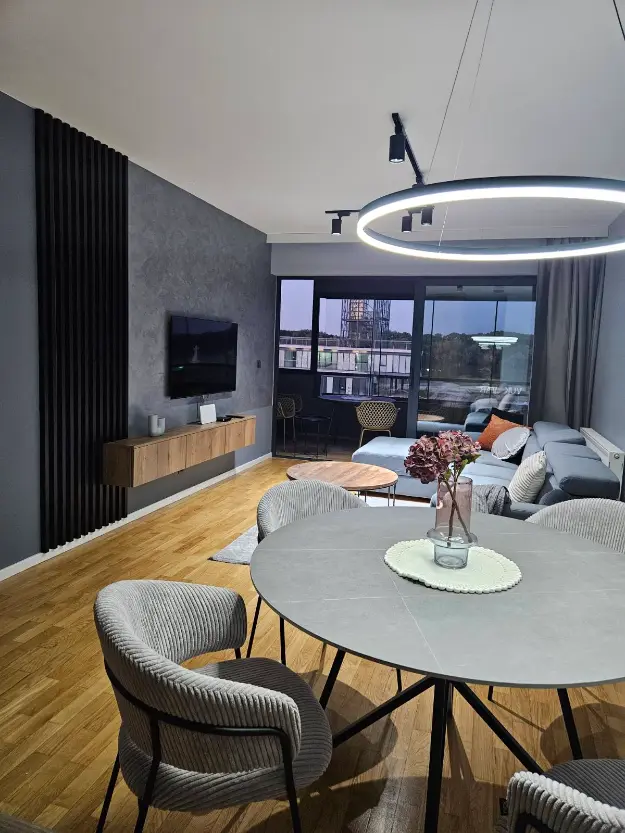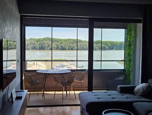 Apartman ima potpuno opremljenu kuhinju, blagovaonicu, dnevnu sobu s TV-om i kaučem na razvlačenje, spavaću sobu s bračnim krevetom i TV-om koja ima pogled na Dunav, drugu spavaću sobu s bračnim krevetom, kupaonicu s walk-in tušem i dodatni toalet. U apartmanu ima sve što je potrebno za ugodan odmor: priključak na optički internet, MaxTV s velikim izborom programa, klima, perilica suđa, mikrovalna pećnica, aparat za kavu, sušilo za kosu, perilica i sušilica rublja, glačalo i daska za glačanje.
