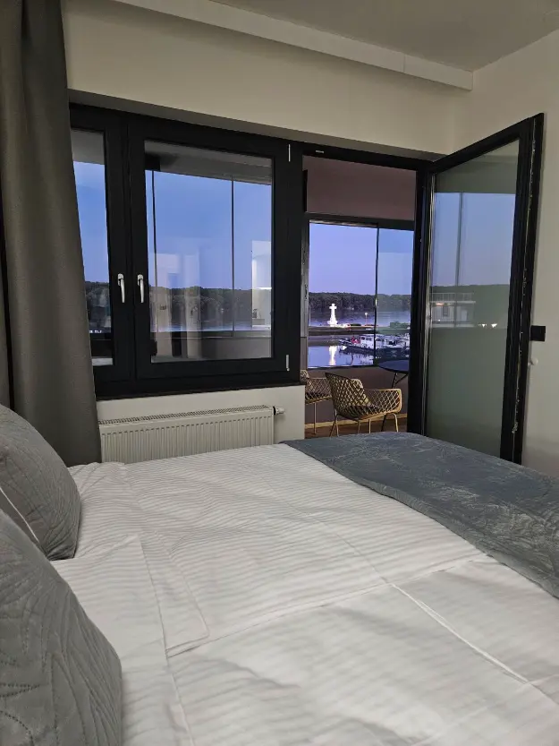 Najveća prednost apartmana je predivan, veliki balkon na kojem se može uživati u pogledu na zimsku luku, šetnicu i Dunav te crkvu sv. Filipa i Jakova i Vodotoranj.