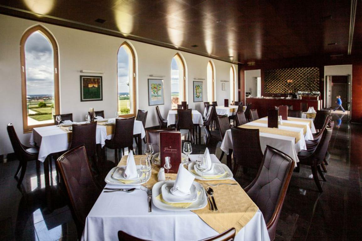 U zgradi dvorca se nalazi luksuzno uređen restoran bogate gastronomske ponude new age kuhinje. New age kuhinja je bazirana na autohtonim namirnicama, pripremanima na sofisticirani način, fusion filozofijom, čime svakome gostu približava okuse Srijema i Slavonije na nov način, sljubljujući vino na čaše uz svaki novi slijed jela.