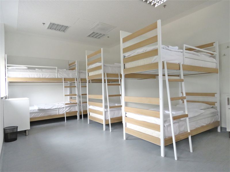 Ukupan kapacitet hostela je 330 kreveta, od toga je 24 kreveta raspoređeno u 18 jednokrevetnih i dvokrevetnih soba, a 306 kreveta raspoređeno je u 22 spavaonice. Gosti koji noće u spavaonicama na raspolaganju imaju zajedničke kupaonice koje se nalaze na svakome katu. Spavaonice su prilagođene osobama s invaliditetom, te se na svakome katu nalazi kupaonica sa sanitarnim čvorom prilagođena osobama s invaliditetom.
