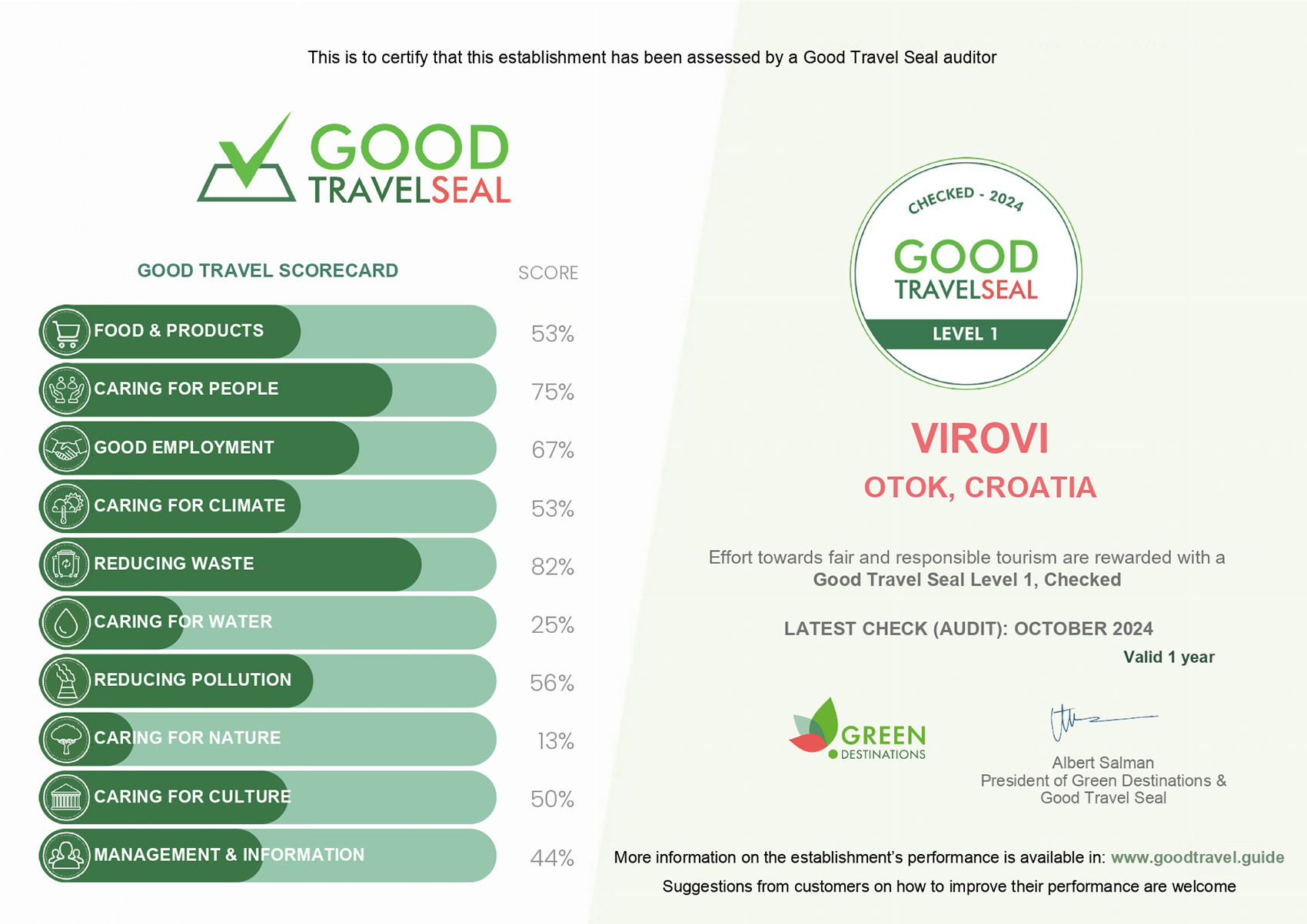 Bioekološko – edukacijski centar Virovi raspolaže sa 62 ležajeva u 15 soba, restoranom sa stotinu mjesta i poznatim slavonskim i srijemskim specijalitetima, wellness kutak s jacuzzijem, parnom i finskom saunom, sobom za masažu i relax zonom.