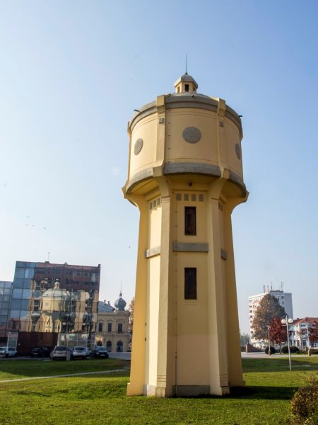 Izgrađen je 1913.g. na mjestu nekadašnje tržnice i jedan je od najstarijih takvih objekata u Hrvatskoj. Ing. J. Funtak i Karlovsky izveli su gradnju prema nacrtu J. Banheyera. Ispod vodotornja nalazi se bušeni zdenac i podzemna vodosprema, a na vrhu je još jedan rezervoar. Stari vodotoranj jedan je od najeksponiranijih motiva starog Vukovara. Danas zauzima središnje mjesto na glavnom trgu ispred hotela Dunav i Gradske uprave.