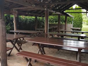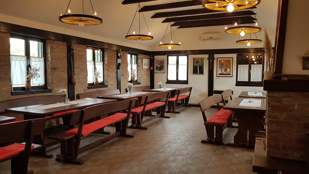 U okviru salaša  hrana se poslužuje u restoranu kapaciteta 70 osoba i na otvorenoj terasi kapaciteta do 250 osoba. Hrana se sprema na stari šokački način i daje poseban gastronomski doživljaj, koji upotpunjuje domaća šljivovica i vino. Nude i sve vrste alkoholnih i bezalkoholnih pića. Iz gastronomske ponude izdvajamo : masni kruh, čvarnjače, kiflice, švargl, krvavica, čvarci, kobasica, kulen, šunka i slanina od domaće crne slavonske svinje, šokačka kokošja juha, paradajz juha, kisela čorba ,čobanac, fiš..