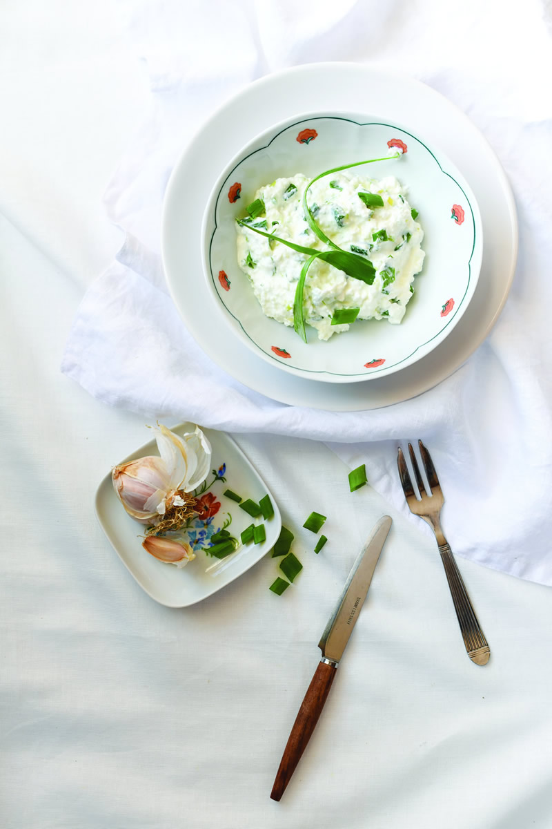 Svježi domaći kravlji sir propasirati ili dobro izmiješati. Dodati vrhnje.