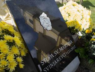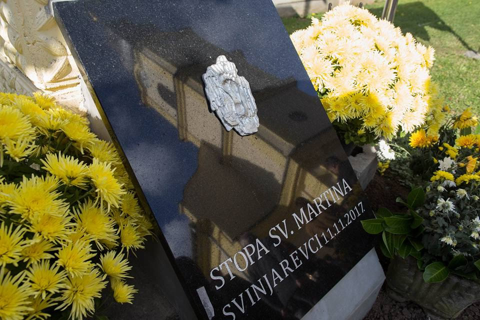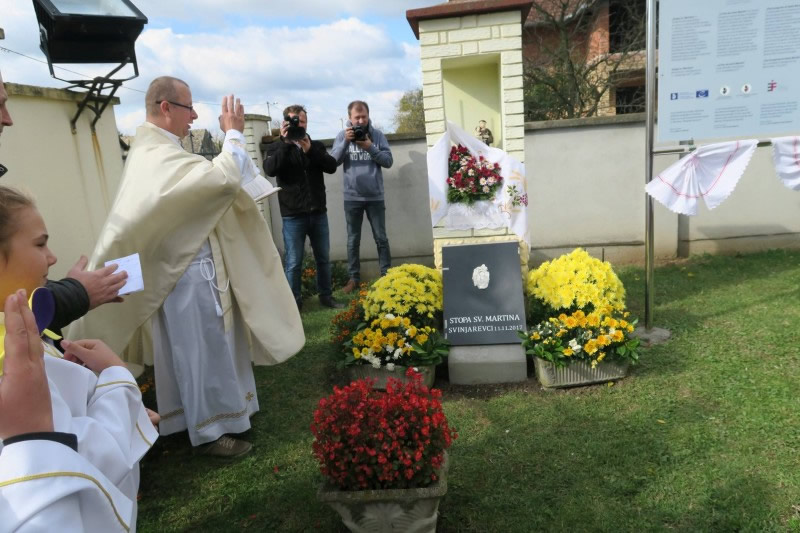 Korak po korak, otisak bose stope u Vukovarsko -srijemskoj županiji vodi do župne crkve u Svinjarevcima do općine Bogdanovci, Privlake i Bošnjaka. Toliko simbolike ima u toj stopi sa stiliziranom polovicom ogrtača. Ona pokazuje put, poziva na dijeljenje i solidarnost, baš kako je radio sv. Martin Biskup. To je njegova stopa, njome je francuski kipar Michel Audiard ispričao priču o životu prvog sveca koji nije bio mučenik, a ipak ima svoj blagdan i koji je pješke proputovao veći dio Europe.