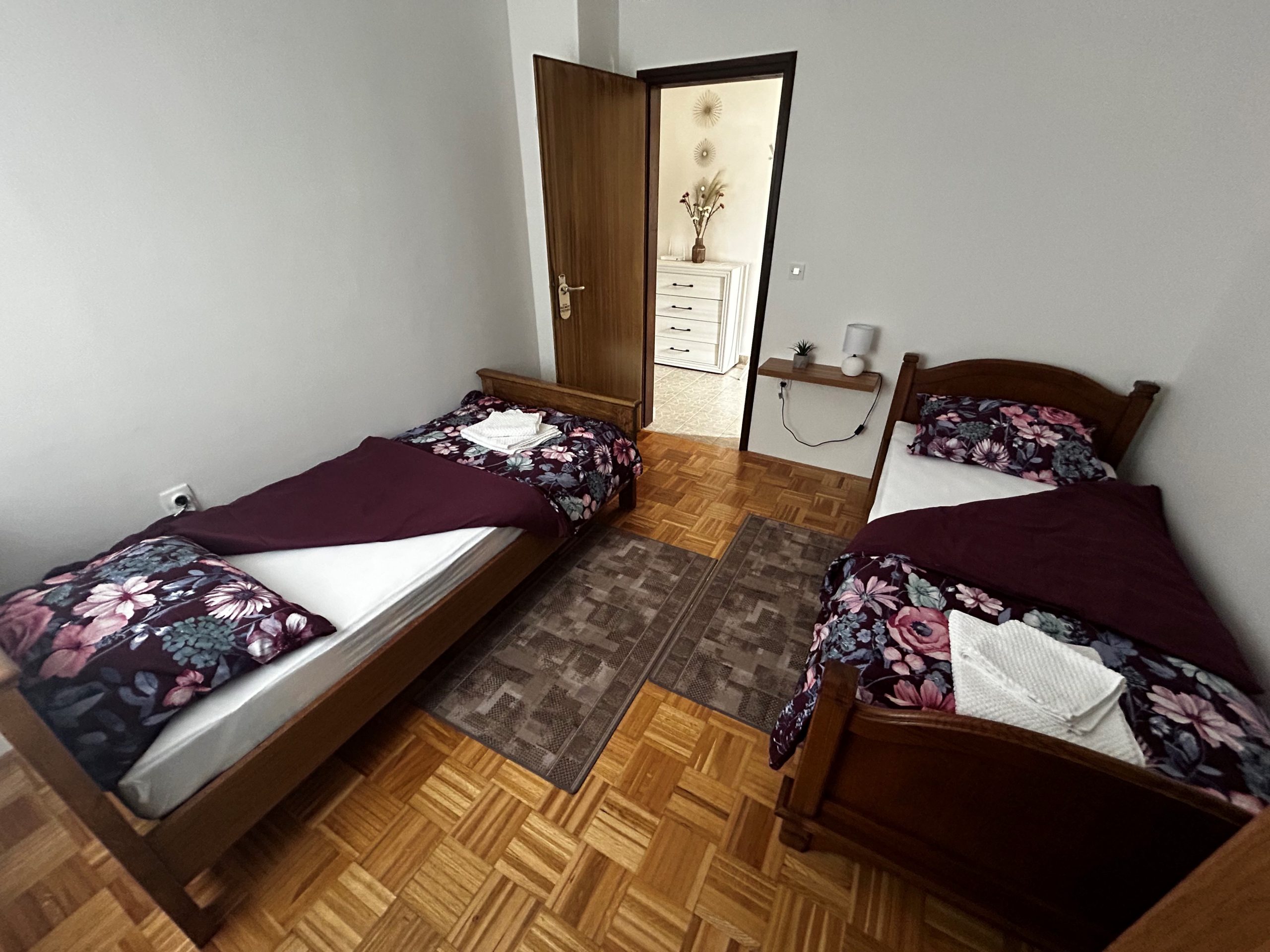 Ovaj samostalni, potpuno opremljeni objekt u Vukovaru pruža idealan smještaj za turiste koji traže udobnost i praktičnost. Smještaj se sastoji od dvije spavaće sobe – jedna s prostranim bračnim krevetom dimenzija 160×200 cm, dok druga nudi dva udobna kreveta dimenzija 90×200 cm. Ovaj raspored čini ga savršenim za obitelji ili manje grupe. Kupaonica je opremljena svim potrebnim sadržajima.