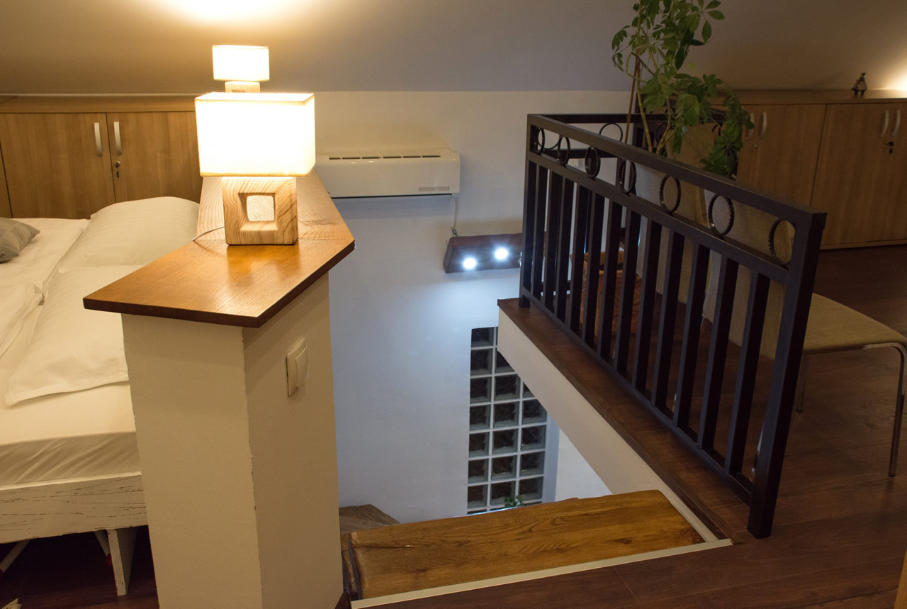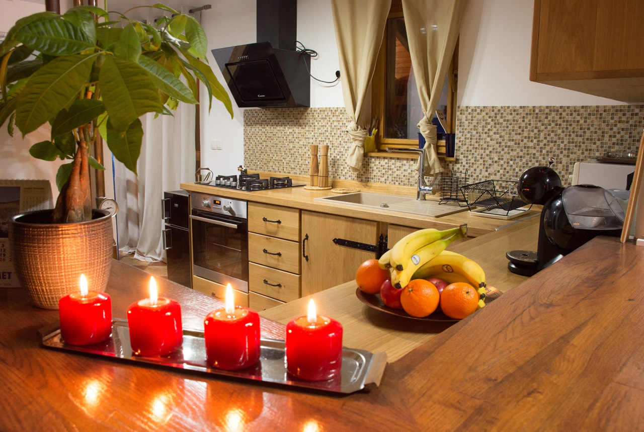 Kuća se sastoji od velike kuhinje s blagovaonicom spojenih s dnevnim boravkom, dvije kupaonice te s jednom sobom s bračnim krevetom u prizemlju. Na katu je velika galerija s četiri kreveta i jedna soba s bračnim krevetom.