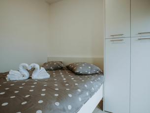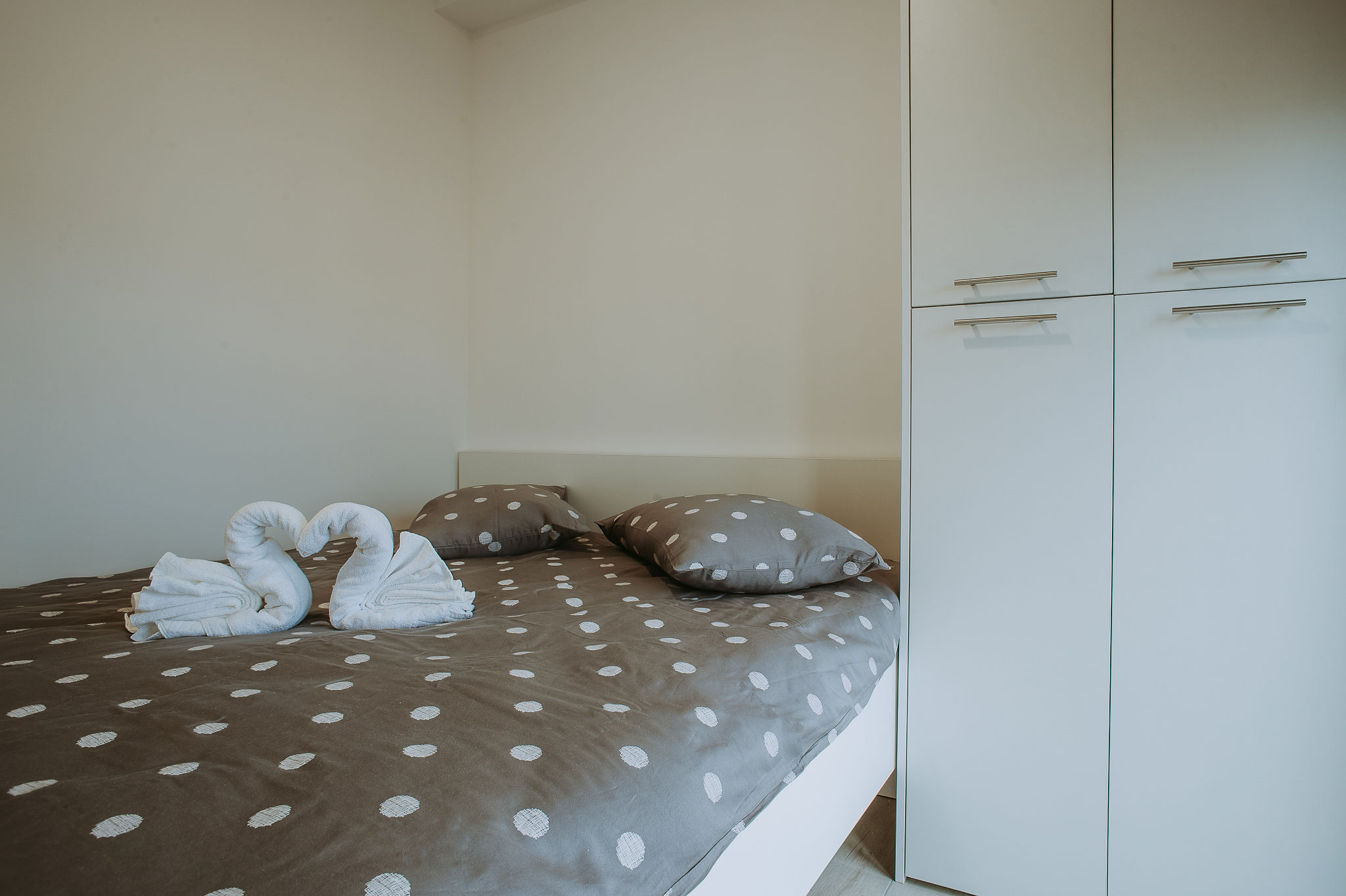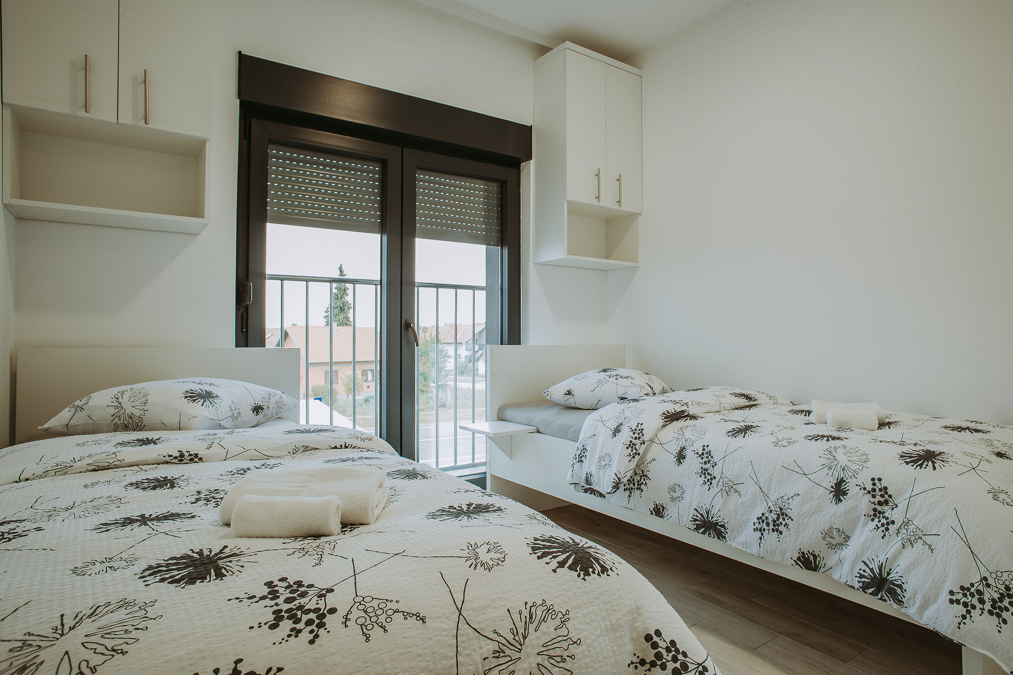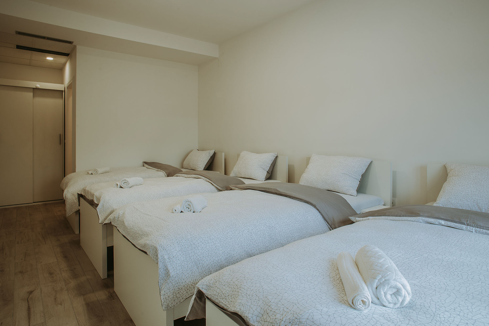 Sobe su opremljene krevetima, ormarima, noćnim ormarićima. Svaka soba ima kupaonicu opremljenu potrebnim elementima.
